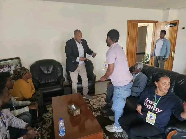 ተወከልቲ መተሓባበርቲ እቲ ሰለማዊ ሰልፊ ይኣክል ንሰለስተ መዓልቲ ከካይድዎ ዝቐነዩ ሰላማዊ ሰልፊ ብዝምልከት ዝተዳለወ ናይ ፅሑፍ መደምደምታን መልእኽትታን ብምሓዝ ናብ ፕረዚደንት ግዝያዊ ምምሕዳር ትግራይ ከይዶም መብርሂ ሂቦም ።